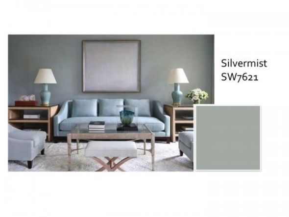 The real Tobi Fairley room featuring Sherwin Williams “Silvermist”  (bottom image) looks nothing