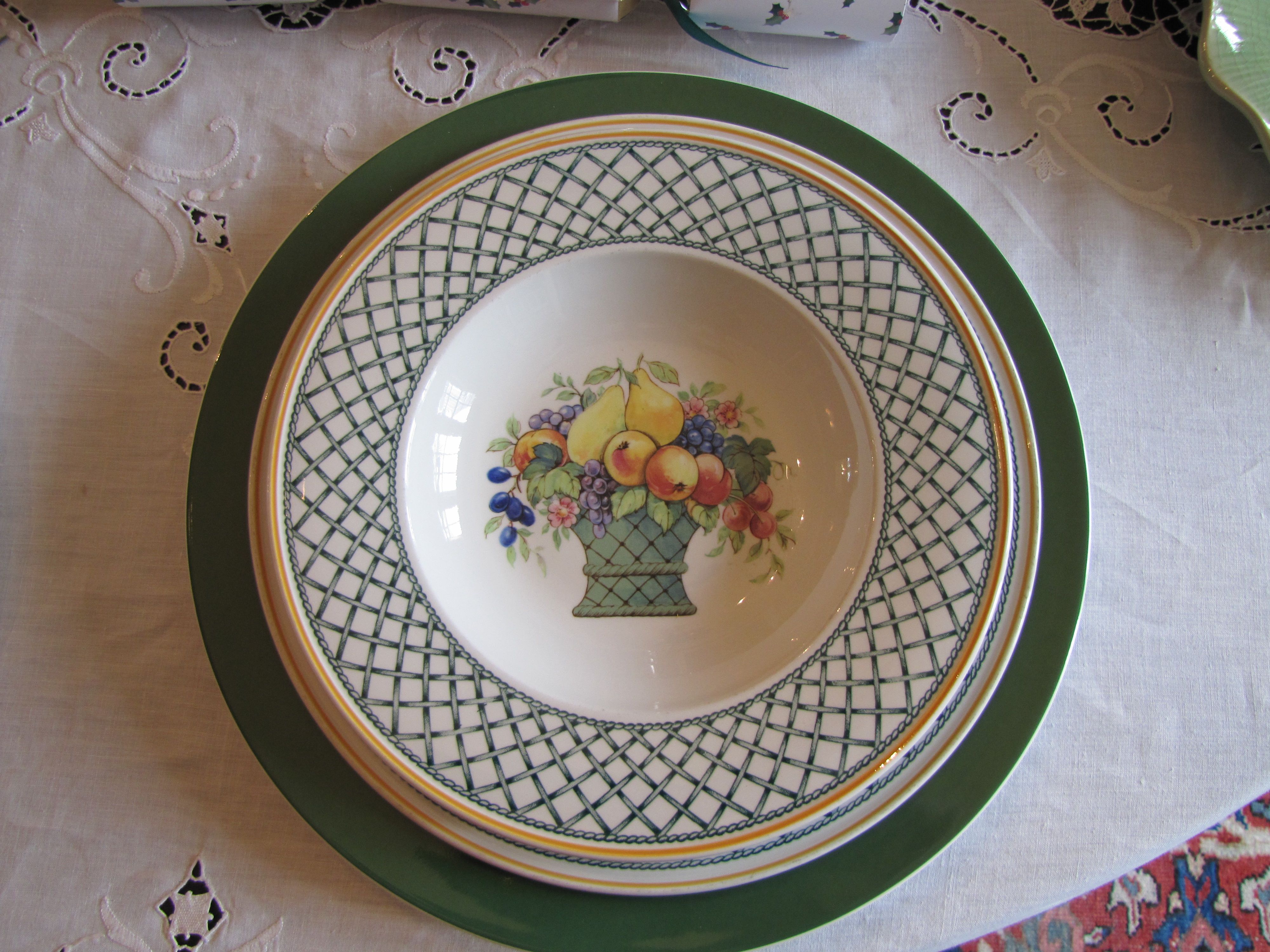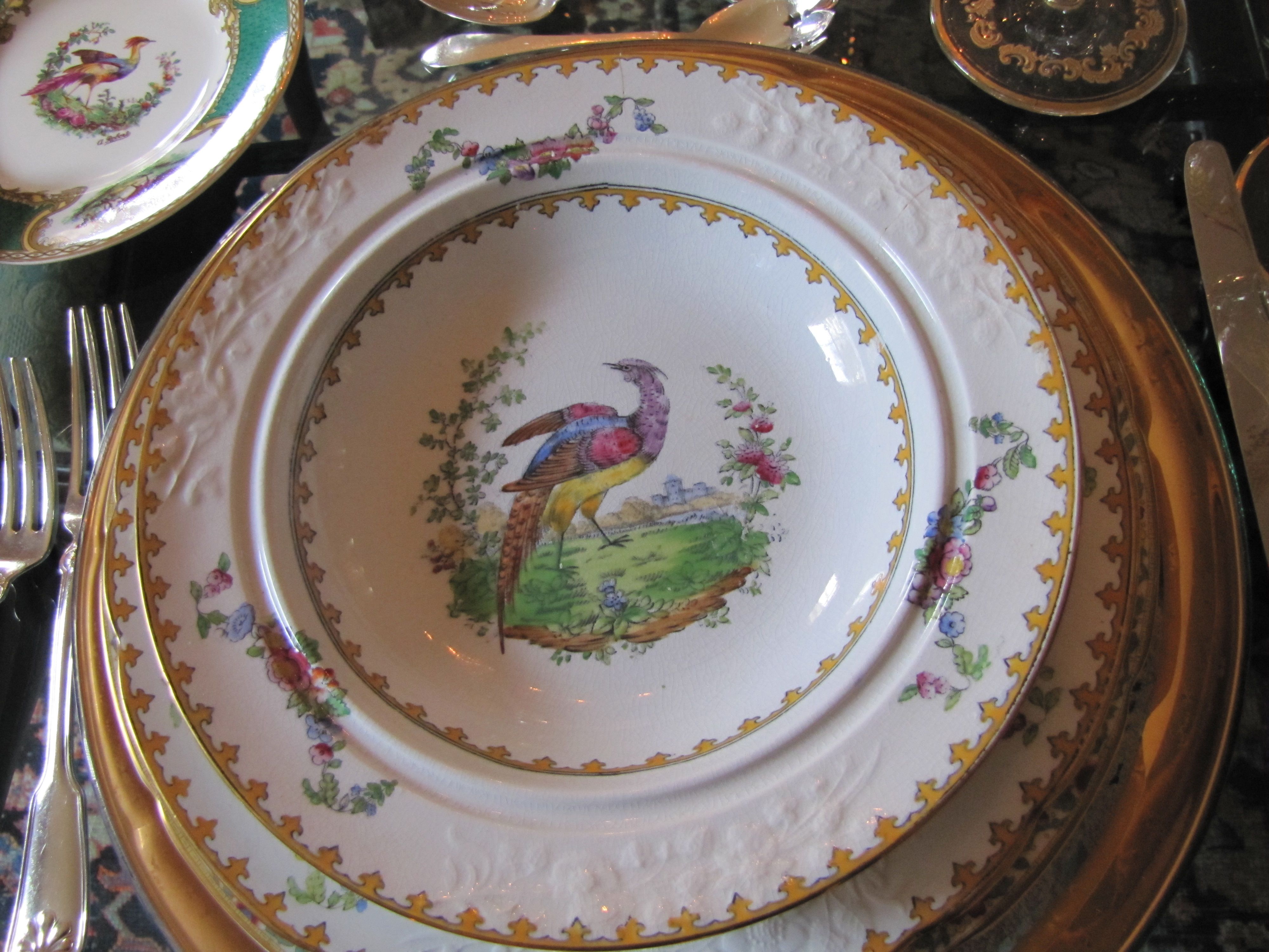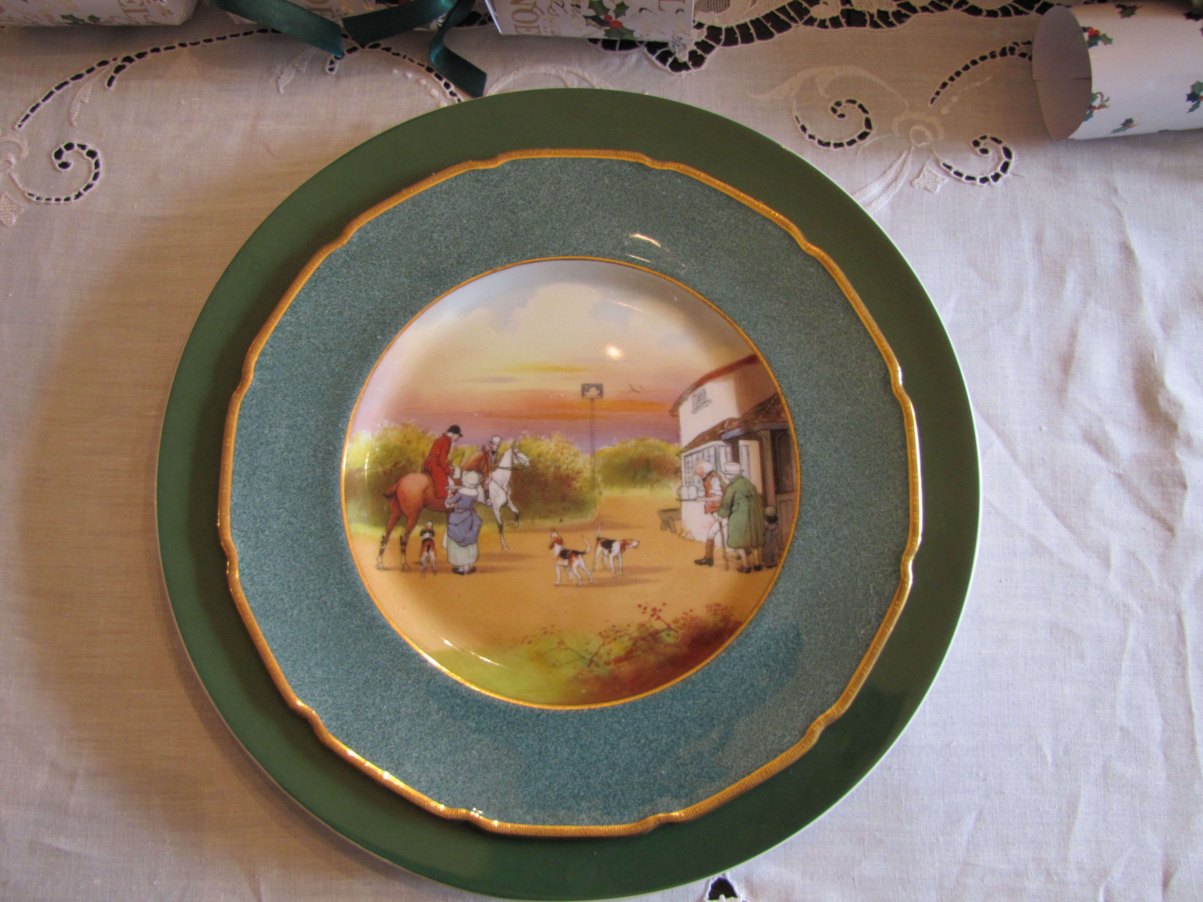 And it even looks nice with my set of Hunt Scene china (not sure of the pattern name) by Royal Doulton: