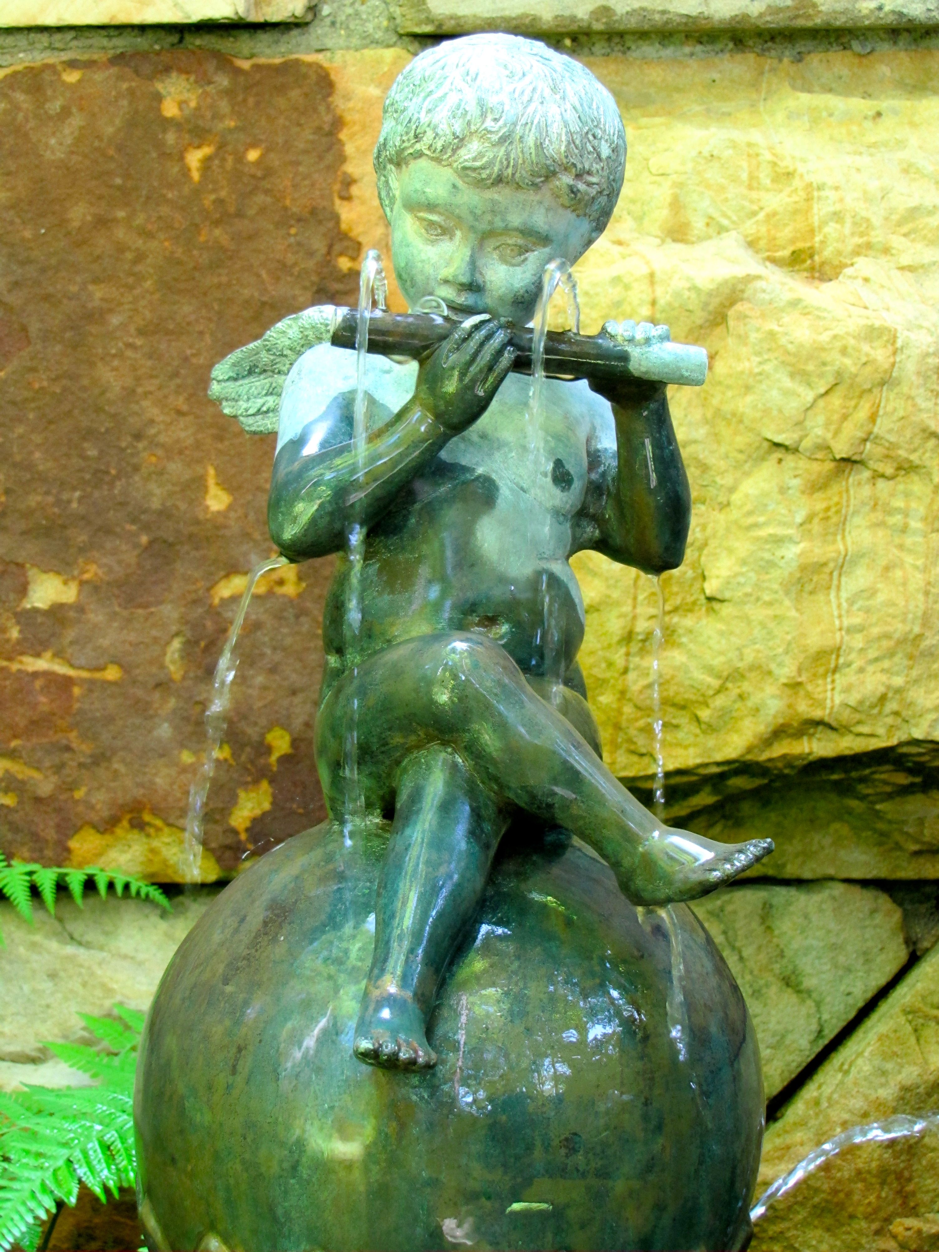Charleston courtyard, same as above, with close up of bronze child. She is on tippy-toes and still just can’t quite reach the tree branch! How cute is she?