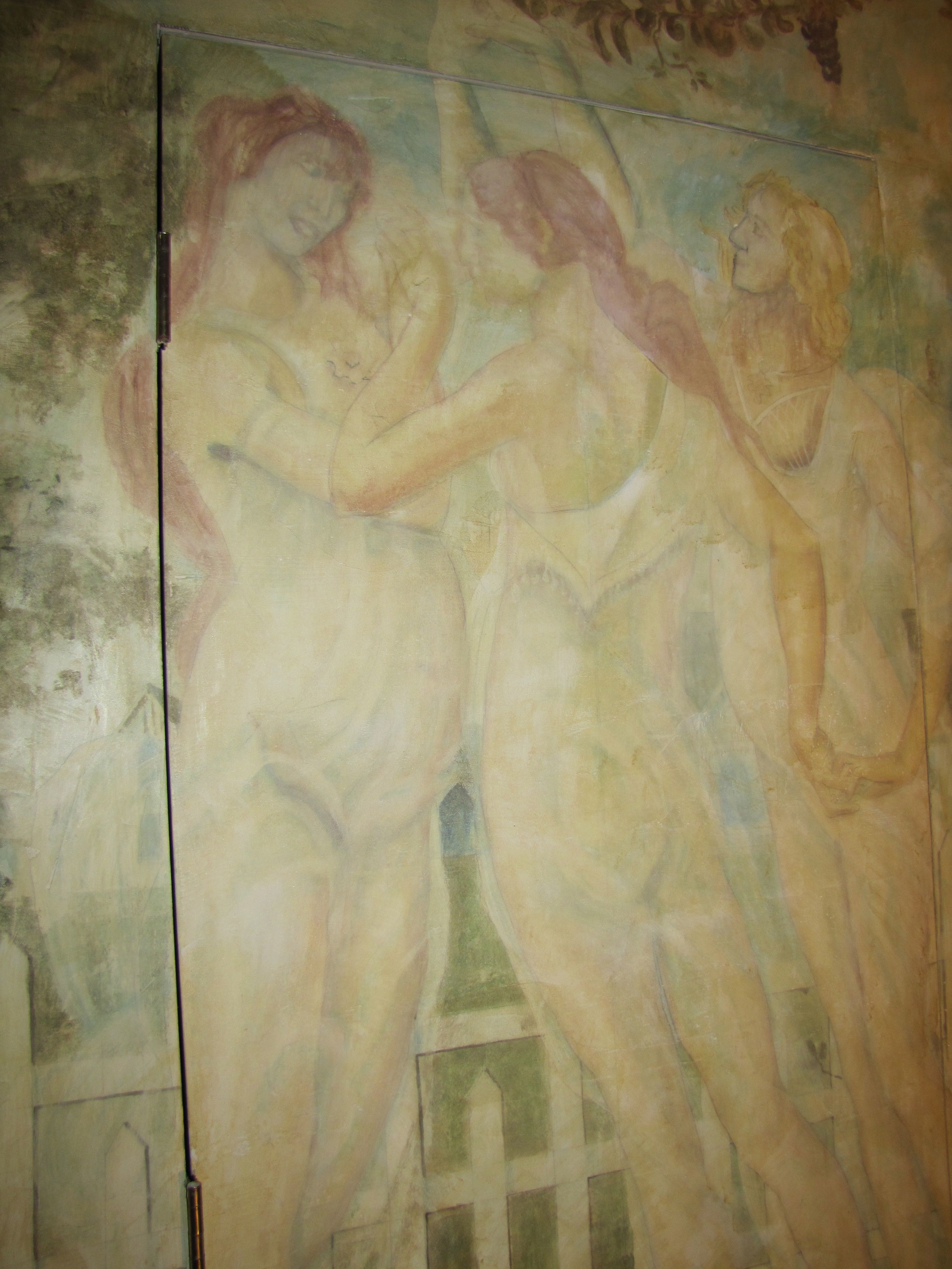 The wine cellar is entered from the outside, just to the right of the above photograph. A large arched oak door marks the entrance (I could not get a photograph of the door due to our tour-goers’ entering and exiting). The cellar’s interior drew special awe from our visiting group of gardeners: