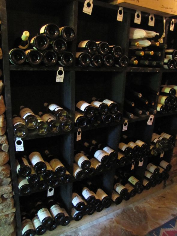 The wine cellar is entered from the outside, just to the right of the above photograph. A large arched oak door marks the entrance (I could not get a photograph of the door due to our tour-goers’ entering and exiting). The cellar’s interior drew special awe from our visiting group of gardeners: